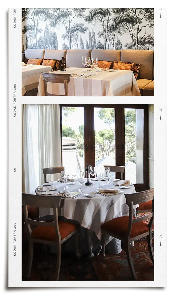 Gastronomía de autor en un lujoso espacio con comedor amplio y una gran bodega acristalada.